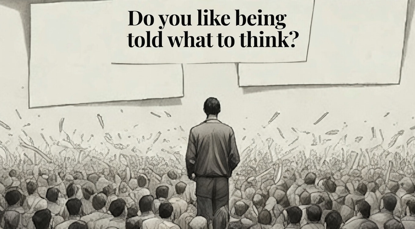 Bạn có thích bị bảo phải mua gì, thậm chí phải nghĩ gì không? Và đó chỉ là bề mặt. Nghiện mạng xã hội như một cơn nghiện; nó không chỉ bán sản phẩm, mà còn “bán” cả cách tư duy của bạn. Con người đôi khi muốn suy nghĩ của mình được định hướng hoặc thay thế bởi người khác. Một khi bạn tiếp nhận thông tin đó, nó có thực sự thay đổi điều gì không? Bạn biết thông tin đó thì sẽ loại bỏ điều xấu chăng? Nó làm thế giới tốt đẹp hơn không? Dưới tác động âm thầm của “ô nhiễm tư tưởng” lan tỏa, ngay cả trong những khoảnh khắc trống rỗng về ý nghĩa, tư duy của chúng ta vẫn cần giữ gìn một giá trị đặc biệt, một điều gì đó thực sự quan trọng để không bị cuốn theo dòng thông tin vô bổ.