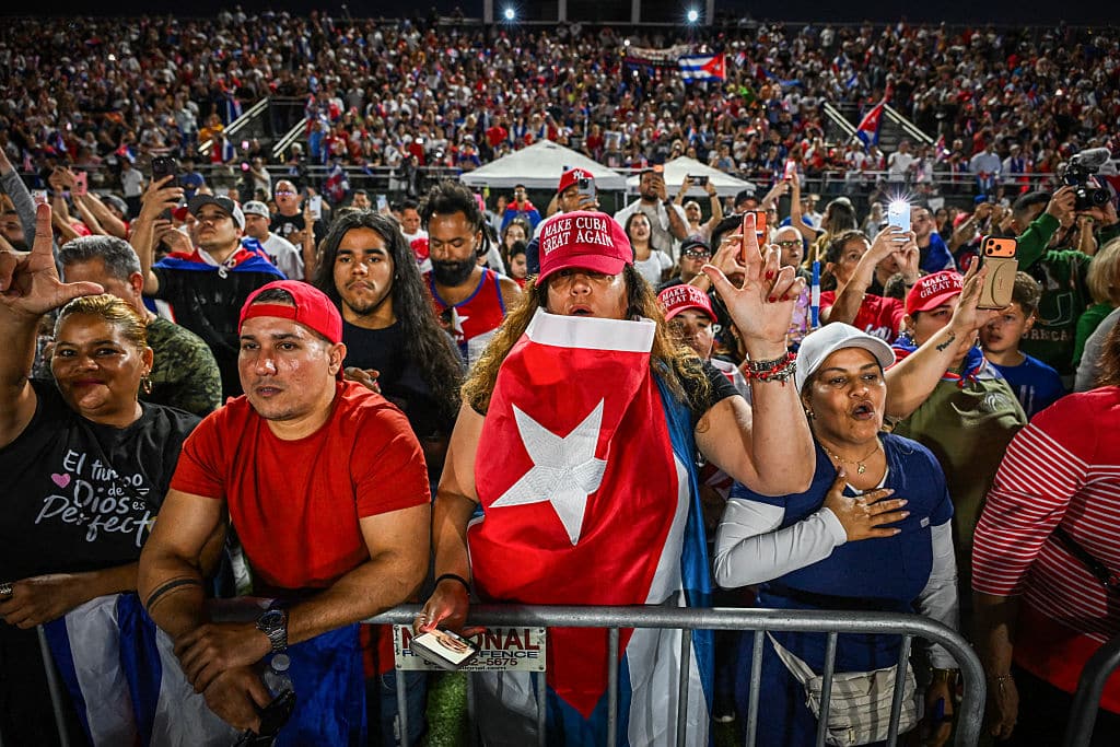 Ngày 24/3/2026, một đám đông lớn đã tham gia cuộc biểu tình "Cuba Libre" tại công viên Milander, hô vang các khẩu hiệu như "Tự do", "Cuba là mục tiêu tiếp theo" và "Làm cho Cuba vĩ đại trở lại". (Giorgio Viera/AFP via Getty Images)