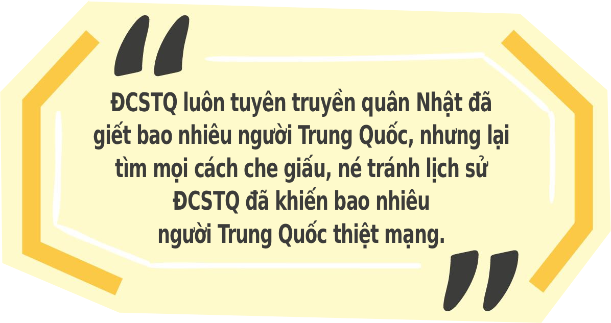 ĐCSTQ lâu nay bám chặt vấn đề lịch sử chiến tranh Trung – Nhật để khơi dậy thù hận trong dân chúng, khiến Nhật Bản luôn mang “gánh nặng lịch sử” và không thể “ngẩng đầu” trước Trung Quốc.