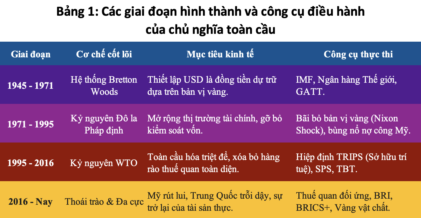 Chủ nghĩa toàn cầu không đơn thuần là một xu thế kinh tế tự nhiên nảy sinh từ tiến bộ công nghệ, mà là một công trình kiến trúc địa chính trị được thiết kế có chủ đích bởi các cường quốc công nghiệp sau Thế chiến thứ hai. Khi khói lửa chiến tranh vừa dứt, thế giới đối mặt với một thực tế mới: hệ thống thuộc địa kiểu cũ – dựa trên sự chiếm đóng quân sự trực tiếp – đã trở nên lỗi thời và tốn kém trước làn sóng giải phóng dân tộc mạnh mẽ.1 Tuy nhiên, nhu cầu của các nhà tư bản phương Tây về nguồn tài nguyên thiên nhiên dồi dào và thị trường tiêu thụ rộng lớn cho hàng hóa công nghiệp dư thừa không hề mất đi. Để giải quyết mâu thuẫn này, một hình thái quản trị mới đã ra đời: chủ nghĩa toàn cầu hóa thông qua các tổ chức đa phương.