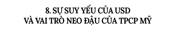 Tuy nhiên, khi chủ nghĩa toàn cầu kết thúc và các rào cản thuế quan mọc lên, vòng tuần hoàn này bị đứt gãy. Việc áp thuế cao và đưa sản xuất về Mỹ khiến lượng USD chảy ra ngoài thế giới giảm đi, làm giảm tính thanh khoản của hệ thống tài chính toàn cầu. Quan trọng hơn, niềm tin vào TPCP Mỹ đã suy giảm nghiêm trọng khi nợ công của Mỹ tăng vọt và Mỹ bắt đầu “vũ khí hóa” đồng USD thông qua các lệnh trừng phạt tài chính (16).