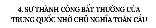 Trung Quốc là trường hợp ngoại lệ duy nhất và chói lọi. Sự thành công của Trung Quốc không đến từ việc tuân thủ các quy tắc của chủ nghĩa toàn cầu, mà từ việc lợi dụng hệ thống này một cách triệt để đồng thời vi phạm gần như 100% các cam kết cốt lõi của mình.