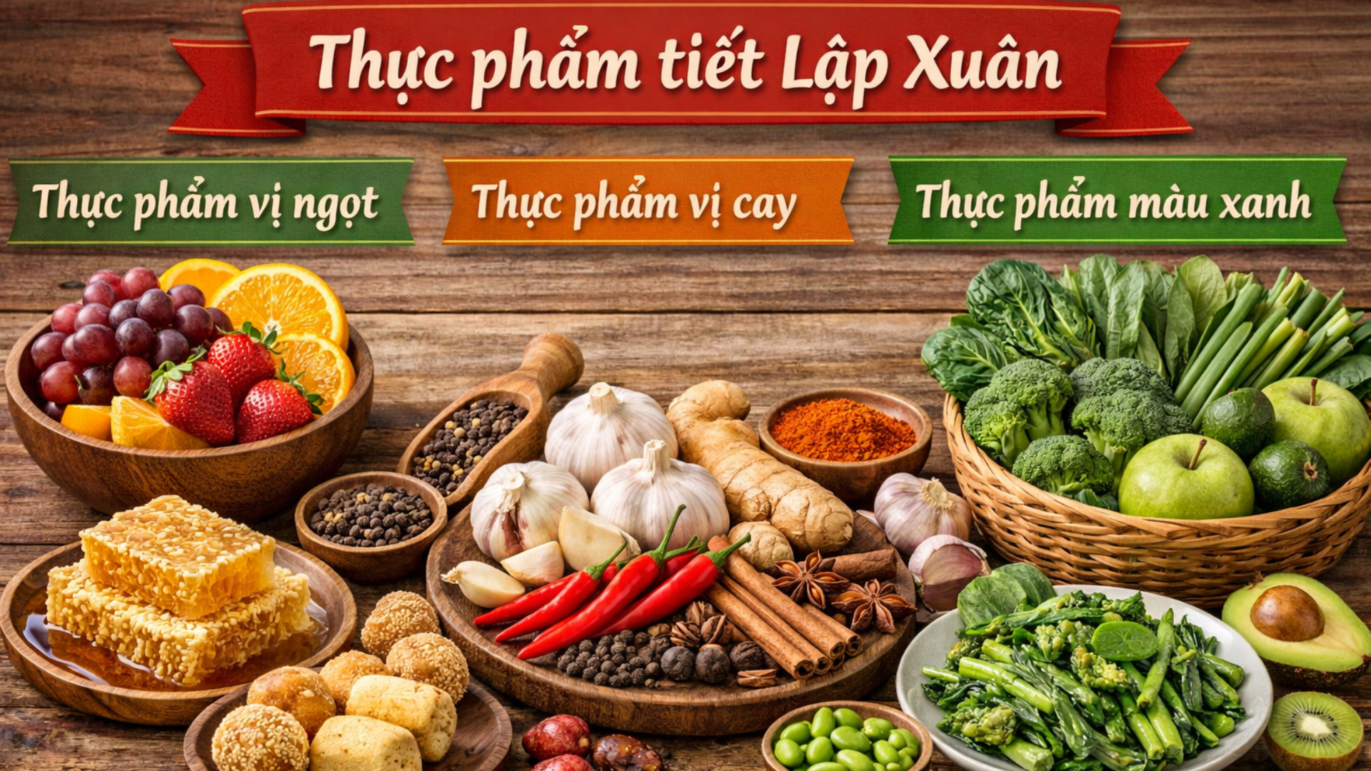 Trong ăn uống, dưỡng sinh Lập Xuân chú trọng sự điều hòa. Sau mùa đông với nhiều thực phẩm béo, mặn và năng lượng cao, cơ thể cần chuyển dần sang chế độ ăn thanh đạm hơn. Những thực phẩm phù hợp trong tiết Lập Xuân bao gồm: