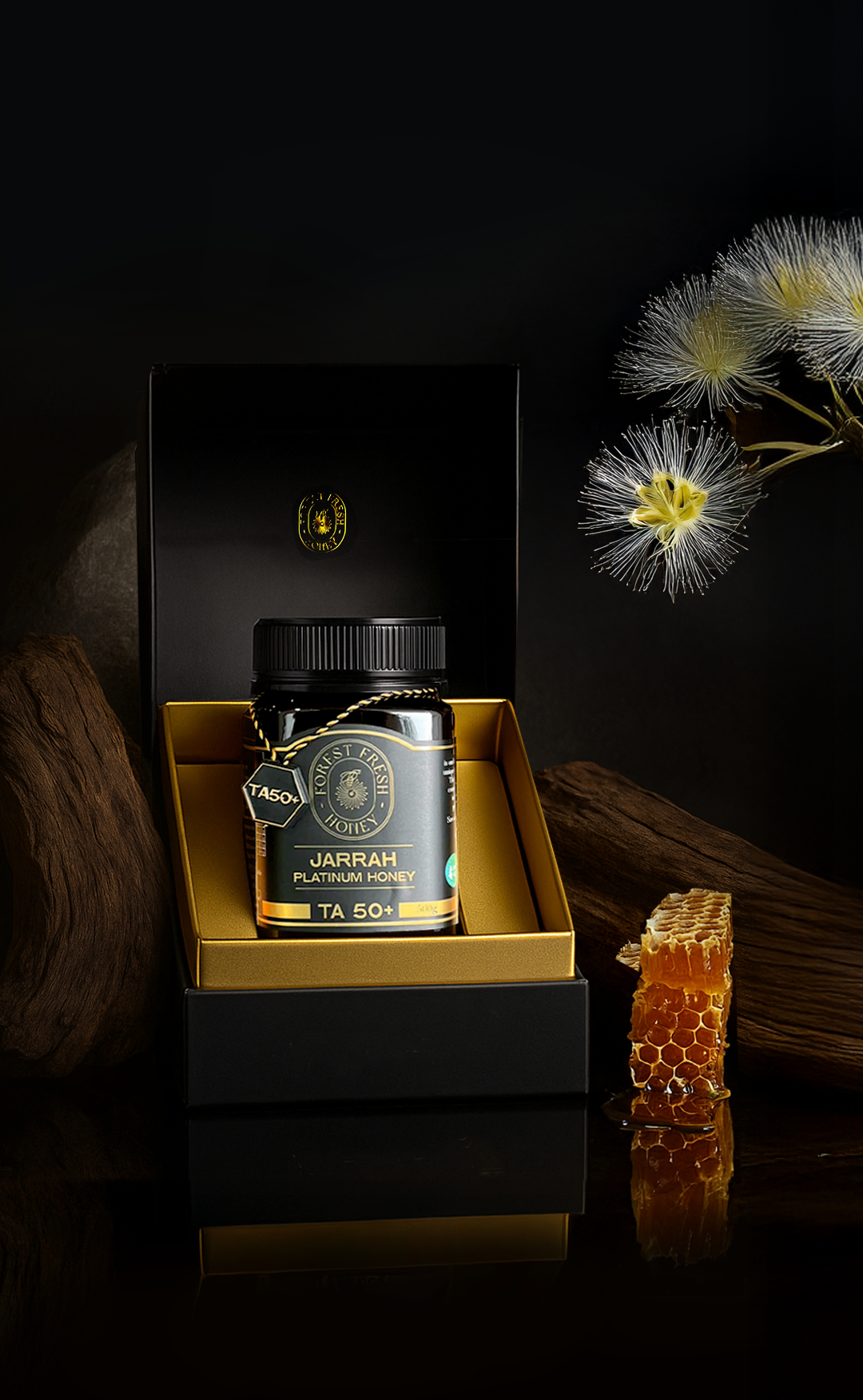 Hiện nay, một số đơn vị uy tín đã và đang phân phối mật ong Jarrah tại Việt Nam dưới dạng sản phẩm xách tay hoặc nhập khẩu chính hãng. Công ty TNHH Sell Best Việt Nam là một ví dụ tiêu biểu – đây là đơn vị tự hào là nhà nhập khẩu độc quyền các sản phẩm mật ong từ rừng Jarrah Tây Úc thuộc thương hiệu Forest Fresh Honey. Forest Fresh Honey là một hãng mật ong gia đình lâu đời tại Tây Úc, chuyên về các loại mật ong đơn hoa quý hiếm với hoạt tính sinh học cao. Thương hiệu này đã cho ra đời dòng sản phẩm Jarrah Platinum TA50+ – tức mật ong Jarrah có chỉ số hoạt tính TA50+ cực kỳ cao, được kiểm nghiệm độc lập và chứng nhận đạt chuẩn chất lượng tại Úc. Những hũ mật ong Jarrah TA50+ từ Forest Fresh hiện đã có mặt trên thị trường Việt Nam (thông qua Sell Best), mang đến cho người tiêu dùng cơ hội tiếp cận mật ong Jarrah chuẩn chất lượng quốc tế một cách dễ dàng. Mật ong được đóng gói trong lọ thủy tinh cao cấp, có kèm theo thông tin chứng nhận TA50+ và nguồn gốc xuất xứ rõ ràng, giúp khách hàng hoàn toàn an tâm về chất lượng. Theo giới thiệu từ nhà sản xuất, mỗi giọt mật ong Jarrah TA50+ đều được tuyển chọn và kiểm định nghiêm ngặt, đảm bảo mật ong thuần khiết 100% và giữ trọn vẹn các dưỡng chất thiên nhiên.
