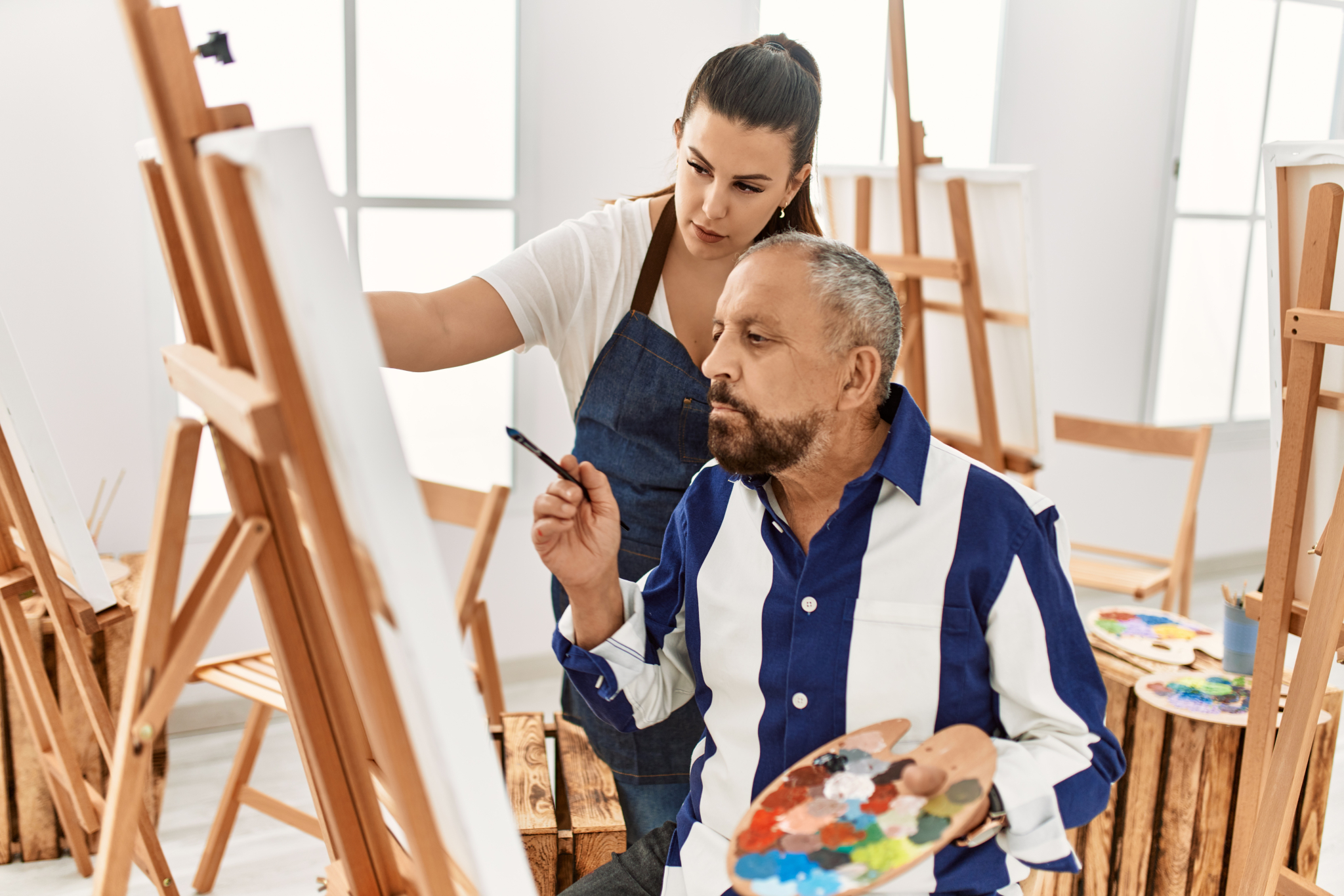 Các nghiên cứu đã chỉ ra rằng việc có mục đích sống có thể làm giảm nguy cơ mắc chứng mất trí nhớ. Bức ảnh cho thấy một người cao tuổi đang học vẽ. (Shutterstock)