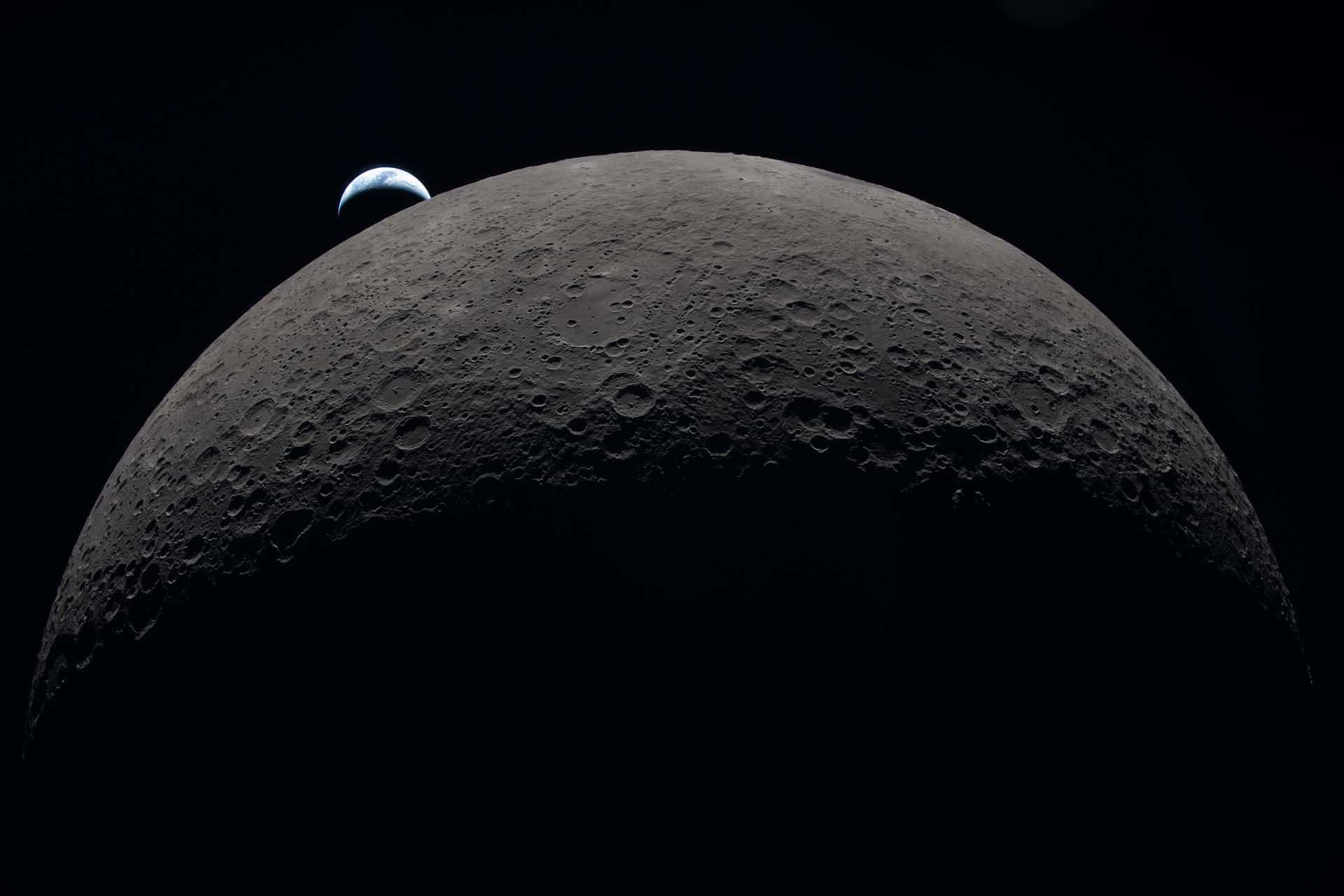 Trong bức ảnh, Trái Đất màu xanh dần dần lặn xuống phía sau đường chân trời hoang vắng của Mặt Trăng. Cách đây 58 năm, phi hành gia Bill Anders của tàu Apollo 8 đã chụp bức ảnh “Trái Đất mọc” mang tính biểu tượng, bức ảnh đã trở thành một kiệt tác vượt thời gian.