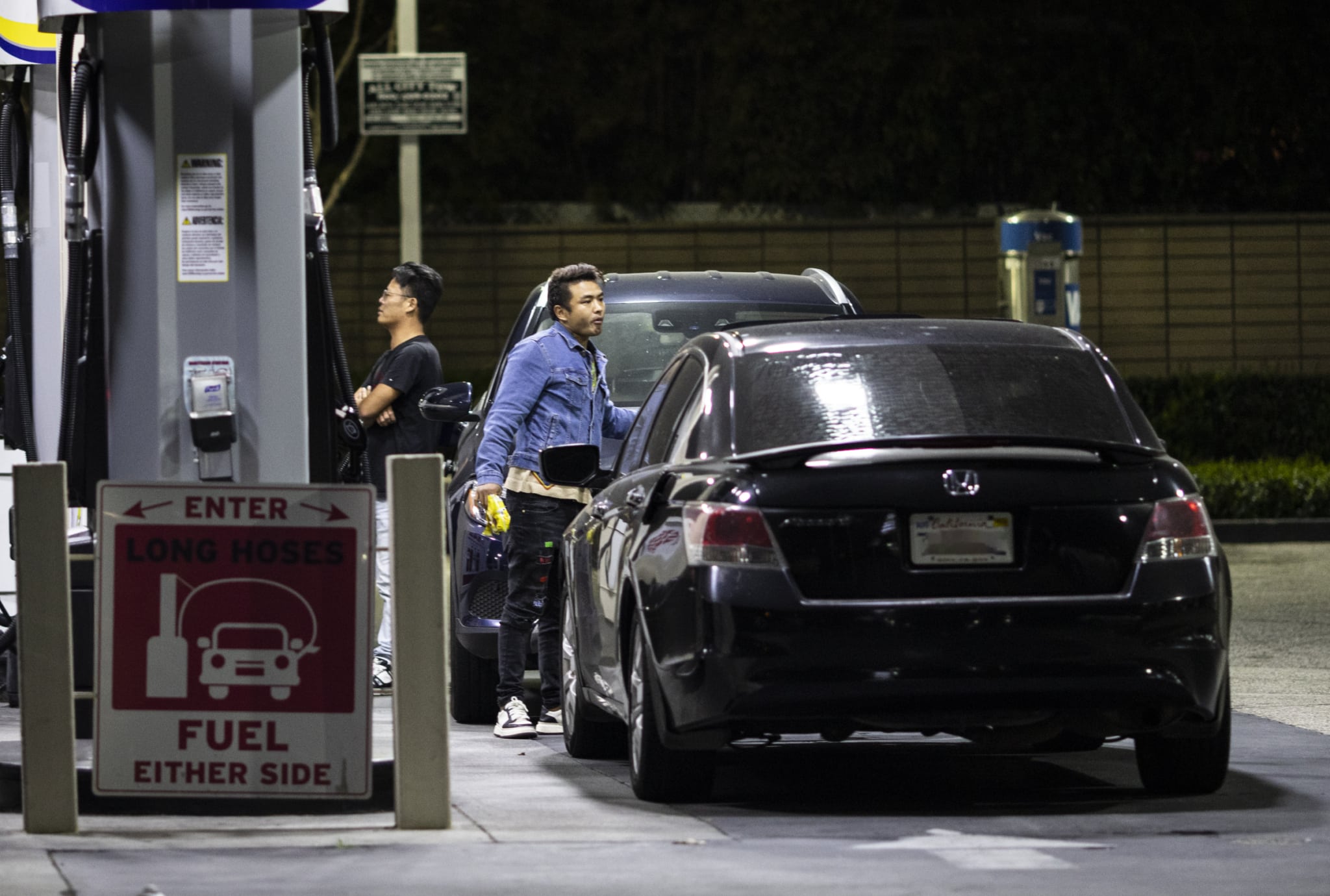 Ngày 25/3/2025, khách hàng đang đổ xăng tại một trạm xăng ở Los Angeles, Mỹ. (Ảnh: John Fredricks/ Epoch Times)