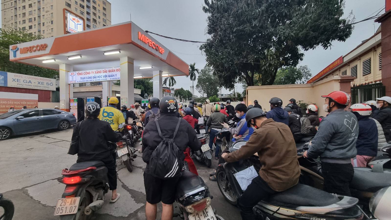 Người dân xếp hàng dài mua xăng vào ngày 9/3. (Ảnh: Người dân ghi lại/Trí Thức VN)