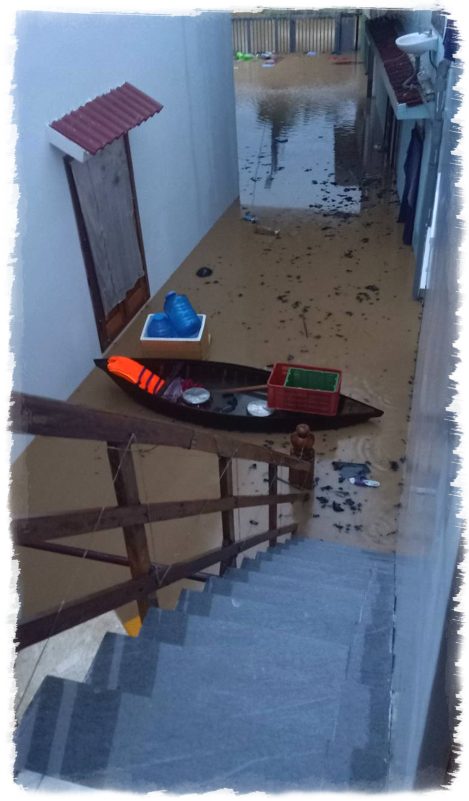 Xã Diên Khánh là một trong hai vùng ngập nặng nề nhất ở khu đô thị trung tâm tỉnh Khánh Hòa. Trong căn nhà của chị Thủy, vài người hàng xóm đã sang tránh trú từ tối hôm trước. Đến sáng hôm sau, nước dâng mênh mông, chị Thủy bất lực nhìn hai người phía xa gọi cứu hộ mà không giúp được gì.
