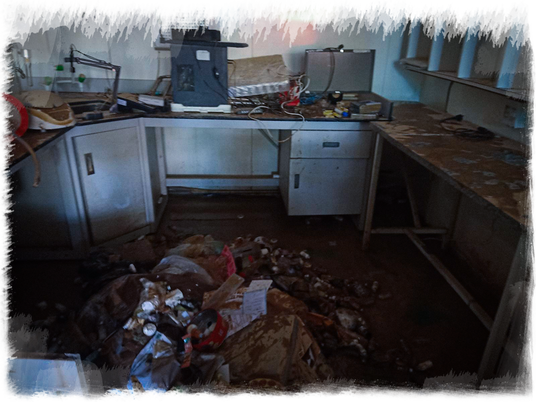 Bên dưới, nước lũ thi nhau xô vào. Sách vở, quần áo, tủ hàng để bếp gas, bình gas… cả nhà cố gắng dọn mấy ngày qua giờ ngập trong nước đục, ngổn ngang.