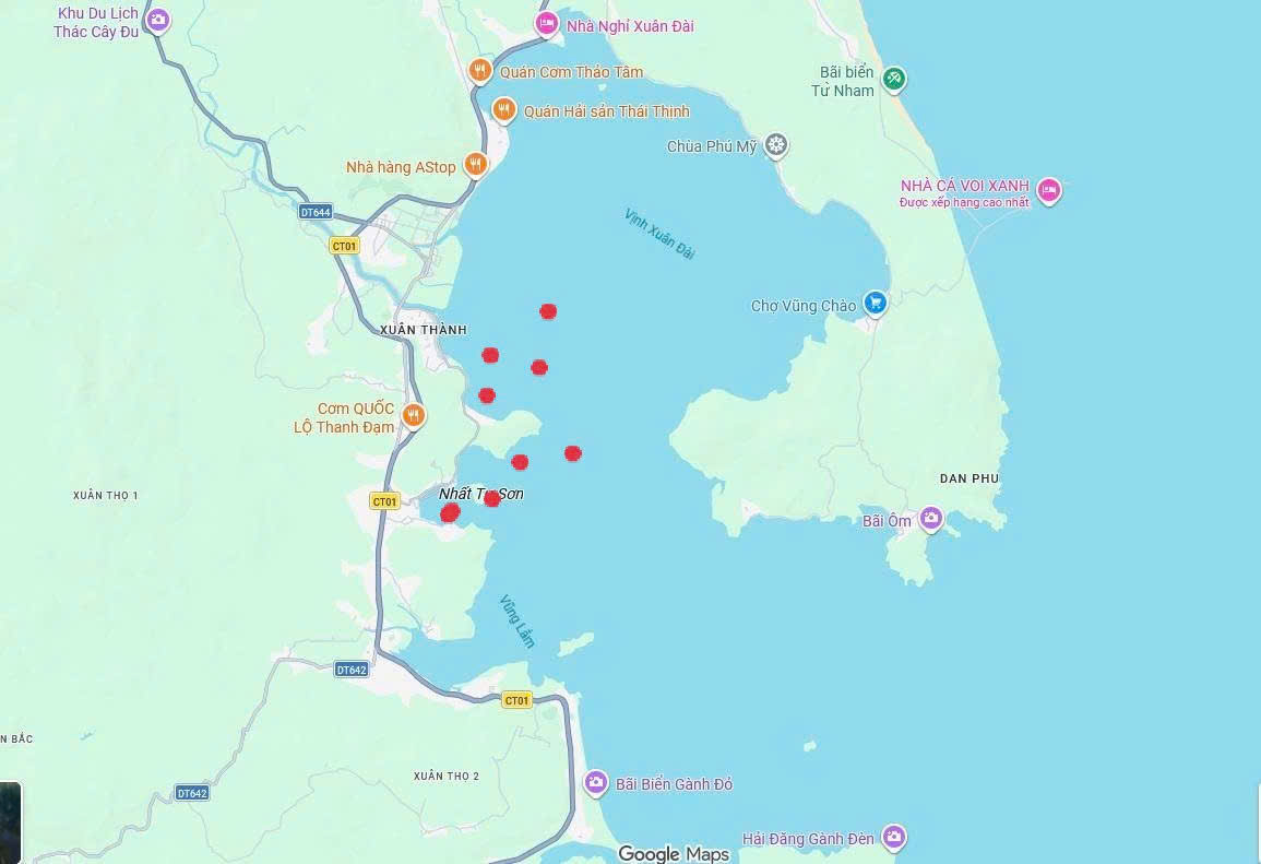 Tại vịnh Xuân Đài cách đó tầm 20km, 80 lồng tôm thả sát đáy, sâu 7 sải của anh Nguyễn Anh Tuấn (SN 1991) cùng chung cảnh bị sốc nước ngọt, cũng trong khoảng 1h30-2h chiều ngày 19/11.