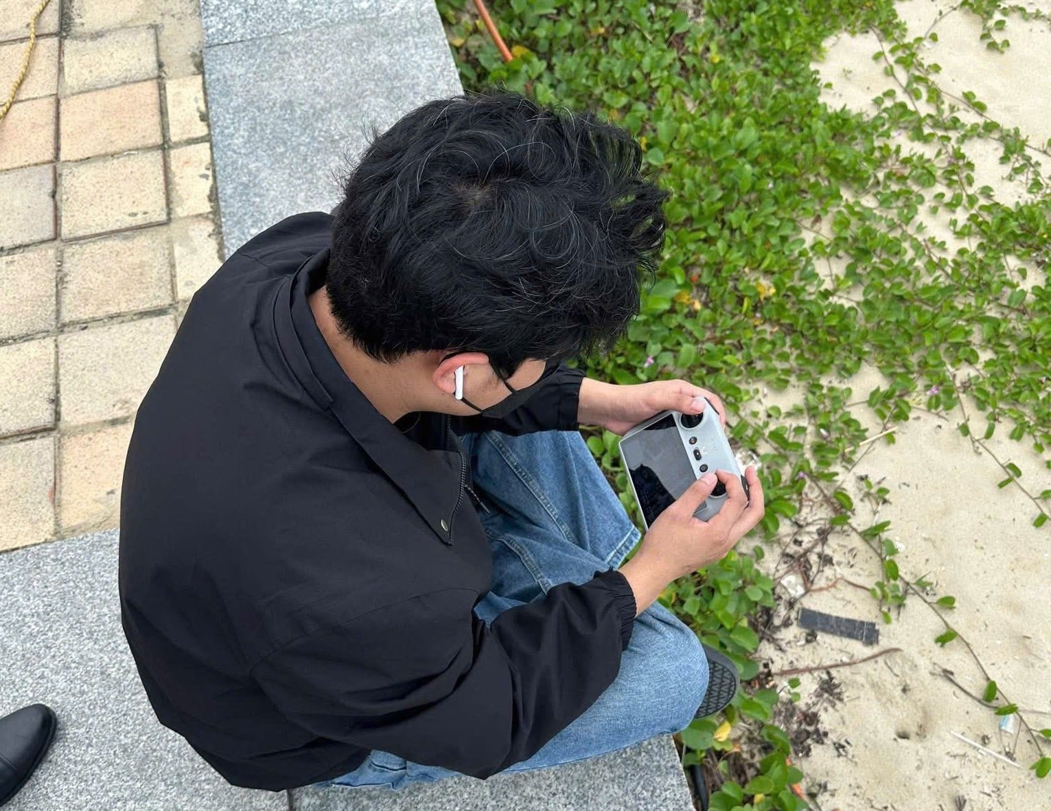 Shen Aodi bị điều khiển flycam cất cánh tại Công viên Biển Đông, chưa được cấp phép. (Ảnh: Ban Chỉ huy Bộ đội Biên phòng/Facebook)