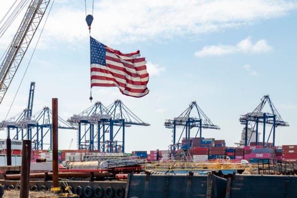 Các container tại Cảng tự do Bayonne, New Jersey, Hoa Kỳ, ngày 10 tháng 4 năm 2025 (Samira Bouaou/The Epoch Times)