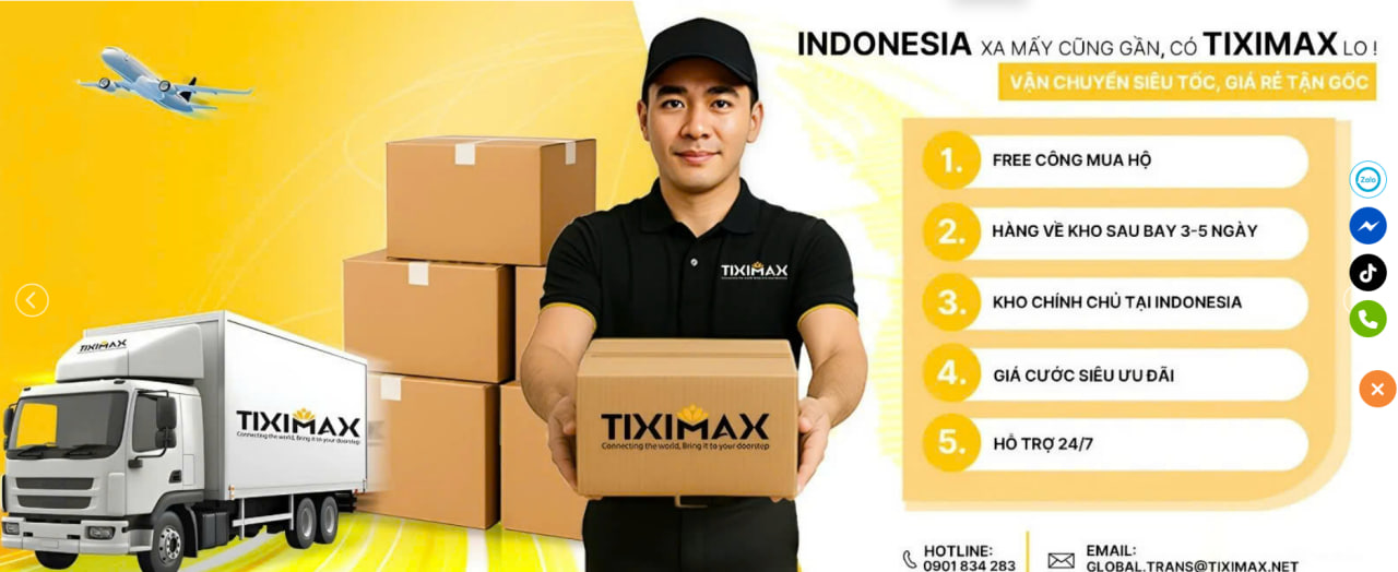 | 4 bước để mua hàng chất lượng từ Indonesia – Bước 1: Liên hệ và gửi thông tin sản phẩm hoặc yêu cầu qua website tiximaxindo.com. – Bước 2: Nhận báo giá trọn gói bao gồm phí mua hộ hàng Indonesia và cước vận chuyển. – Bước 3: Chốt đơn và thanh toán đặt cọc. – Bước 4: Nhận hàng tận nơi tại Việt Nam và tất toán. Ưu điểm vượt trội của Tiximax – Cam kết thời gian, Minh bạch lộ trình: Thời gian nhận hàng nhanh chóng (từ 7-10 ngày). Khách hàng được cung cấp mã Tracking để theo dõi đơn hàng từng phút, từng giây. – Có gói bảo hiểm hàng hóa: Cam kết bảo vệ quyền lợi khách hàng, đền bù thỏa đáng nếu có sự cố mất mát, hư hại trong quá trình vận chuyển. – Tư vấn chiến lược: Tiximax không chỉ vận chuyển, họ còn tư vấn cho bạn những nguồn hàng “ngách” đang có sức mua lớn tại Việt Nam dựa trên dữ liệu thị trường thực tế. Thông tin liên hệ: |