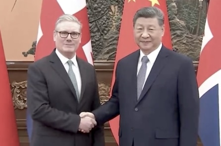 Hôm 5/1, ông Lee Jae-myung bất ngờ rút ra chiếc điện thoại Xiaomi và mời vợ chồng ông Tập Cận Bình cùng chụp ảnh selfie, nhằm thể hiện sự thân mật.