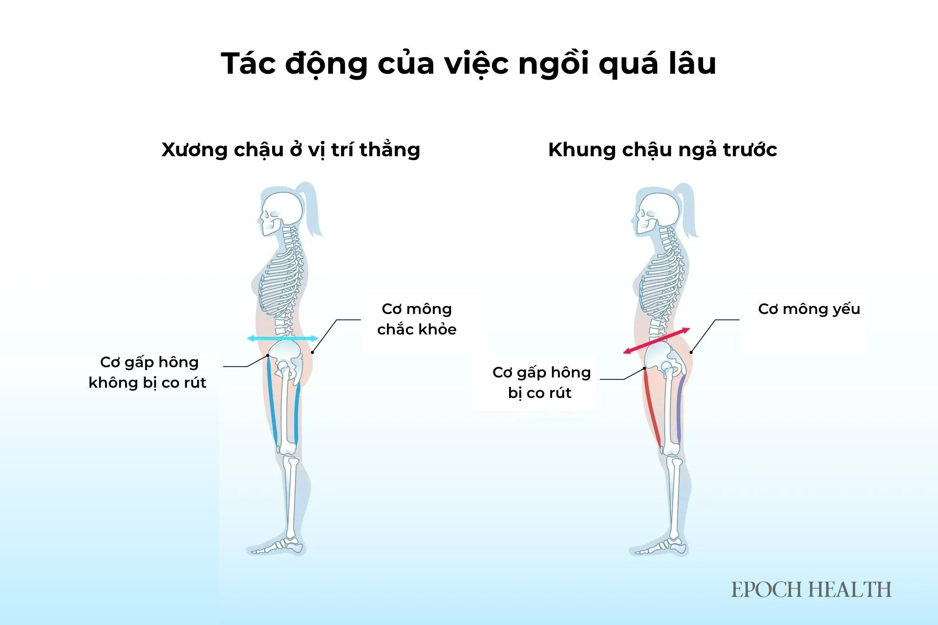 “Ngồi quá lâu khiến khung chậu nghiêng về phía trước và chèn ép khớp háng. Tôi thường nói với sinh viên của mình rằng: giống như việc biến căn hộ một phòng ngủ thành phòng studio, mọi thứ đều bị bó chặt lại. Nhiệm vụ của vật lý trị liệu là giải phóng không gian đó, đưa nó trở lại trạng thái bình thường”.
