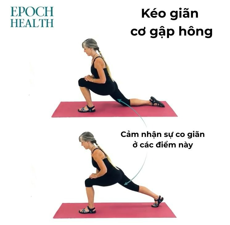 Để chống lại tình trạng co rút do ngồi lâu, hãy thử tư thế chùng gối nửa quỳ hoặc giãn cơ gấp háng khi đứng. Giữ thân trên thẳng, nhẹ nhàng dồn trọng tâm ra trước cho đến khi bạn cảm thấy căng ở phần trước háng.