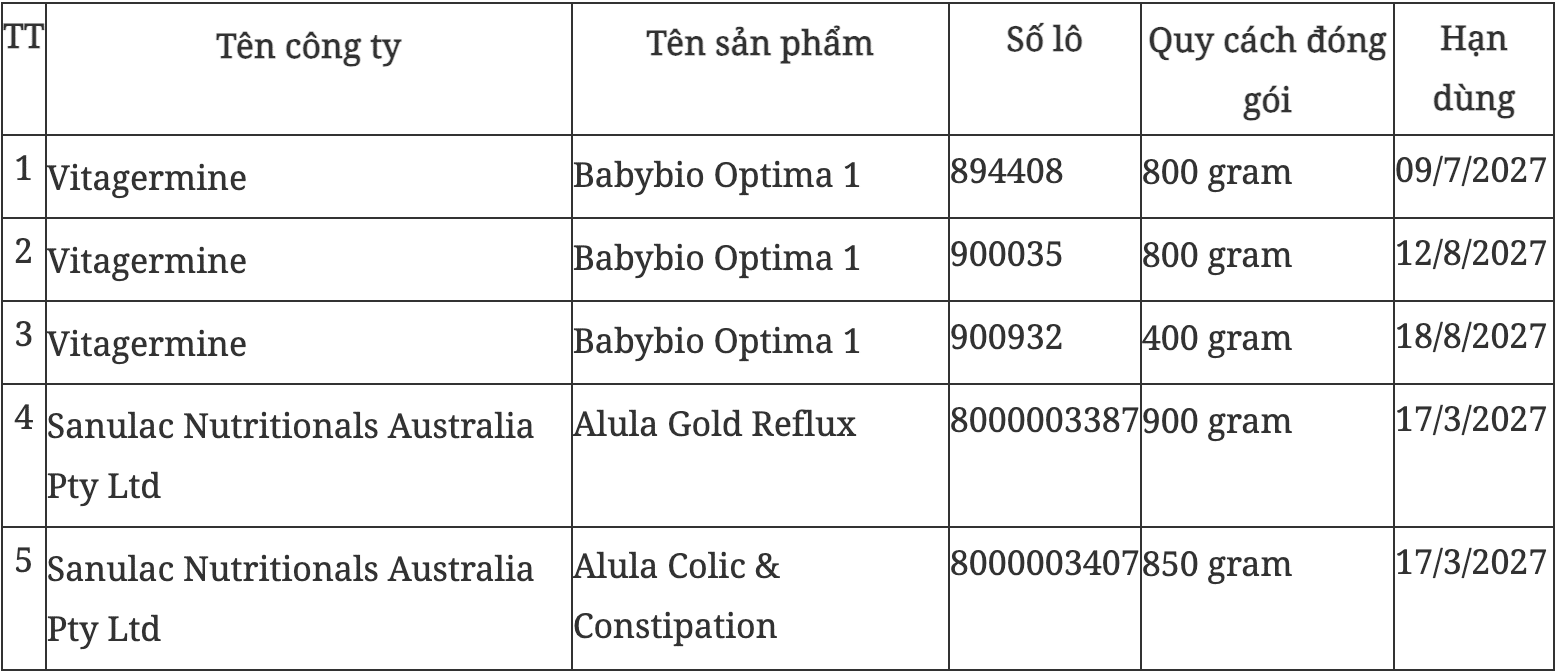 Theo nội dung công văn, việc cảnh báo được thực hiện trên cơ sở thông tin thu hồi sản phẩm do các cơ quan quản lý an toàn thực phẩm quốc tế phát đi, bao gồm cơ quan an toàn thực phẩm Hong Kong và Cơ quan Tiêu chuẩn Thực phẩm Australia & New Zealand. Các sản phẩm nằm trong diện cảnh báo thuộc một số lô sữa công thức sản xuất tại Pháp và Australia, đã hoặc có khả năng được phân phối trên thị trường.