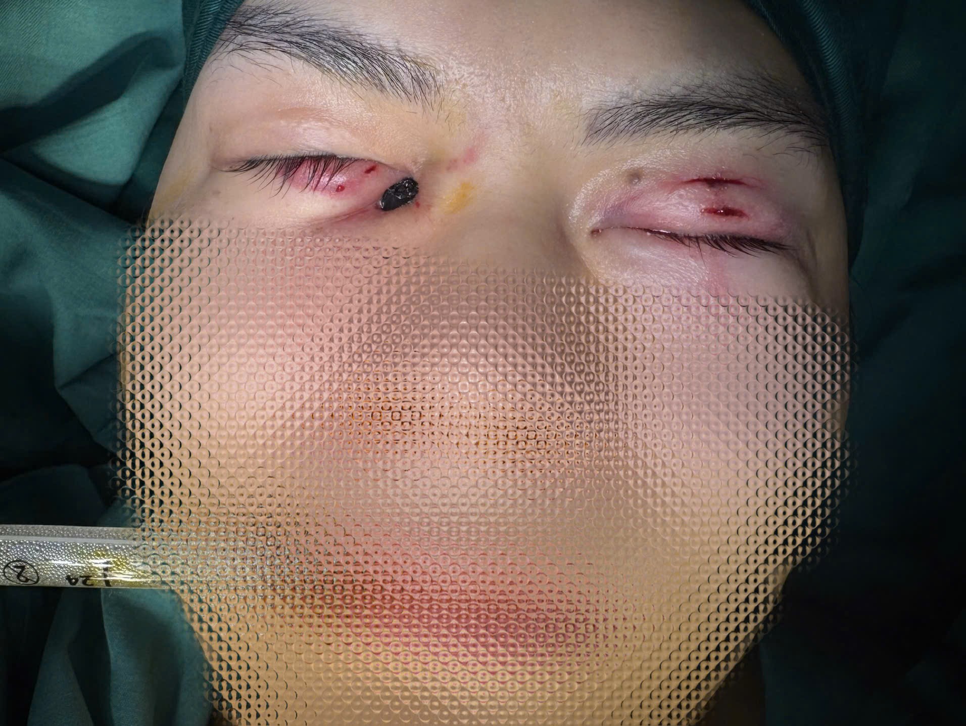 Trong suốt hai giờ diễn ra cuộc phẫu thuật, không khí trong phòng mổ căng như dây đàn. Dị vật 2 bên mắt được rút ra rất cẩn thận từ từ từng milimet, bởi vì chỉ một sai lệch nhỏ cũng có thể gây vỡ mạch máu lớn hoặc tổn thương nhãn cầu của người bệnh.