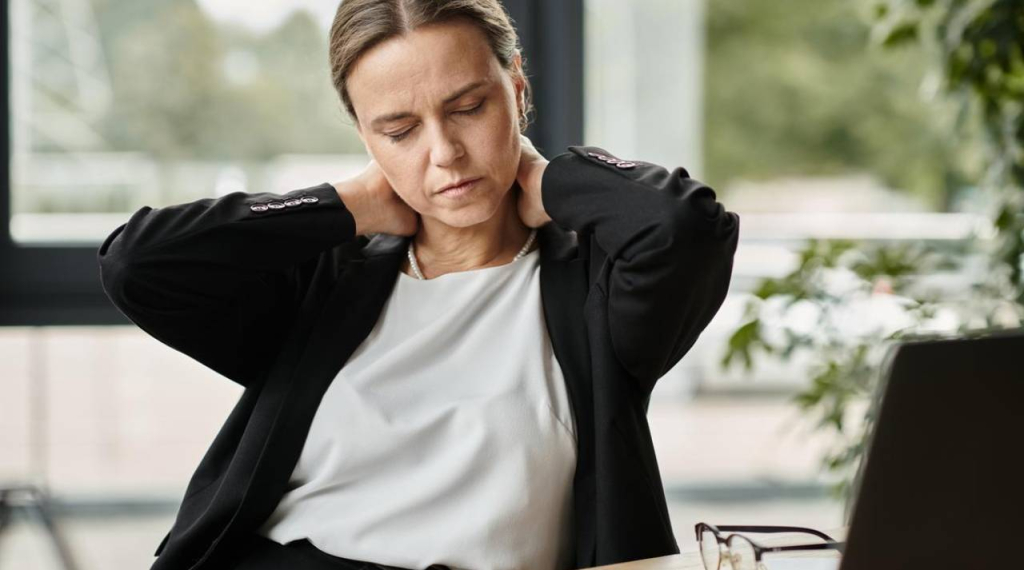 Ngược lại, đau cổ mạn tính thường không chỉ đơn thuần liên quan đến tình trạng cứng khớp. Theo thời gian, tư thế xấu – bao gồm thói quen cúi người về phía trước khi làm việc với máy tính – gây quá tải cho các nhóm cơ nâng đỡ vùng cổ và lưng trên.
