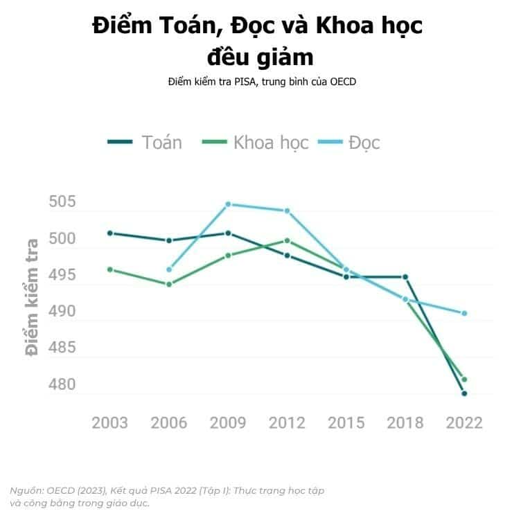 Trên phạm vi toàn cầu, xu hướng này cũng lặp lại. Cứ mỗi ba năm, chương trình đánh giá học sinh quốc tế (PISA) kiểm tra hàng trăm nghìn học sinh 15 tuổi trên toàn thế giới về toán, đọc và khoa học.