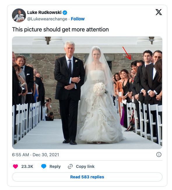 Khi được hỏi vì sao bà Maxwell lại có mặt tại đám cưới con gái Chelsea Clinton vào năm 2010, bà Clinton nói rằng bà không mời bà Maxwell làm khách riêng, mà bà Maxwell tham dự đám cưới như “plus-one” — tức là người đi kèm với một khách được mời chính thức.