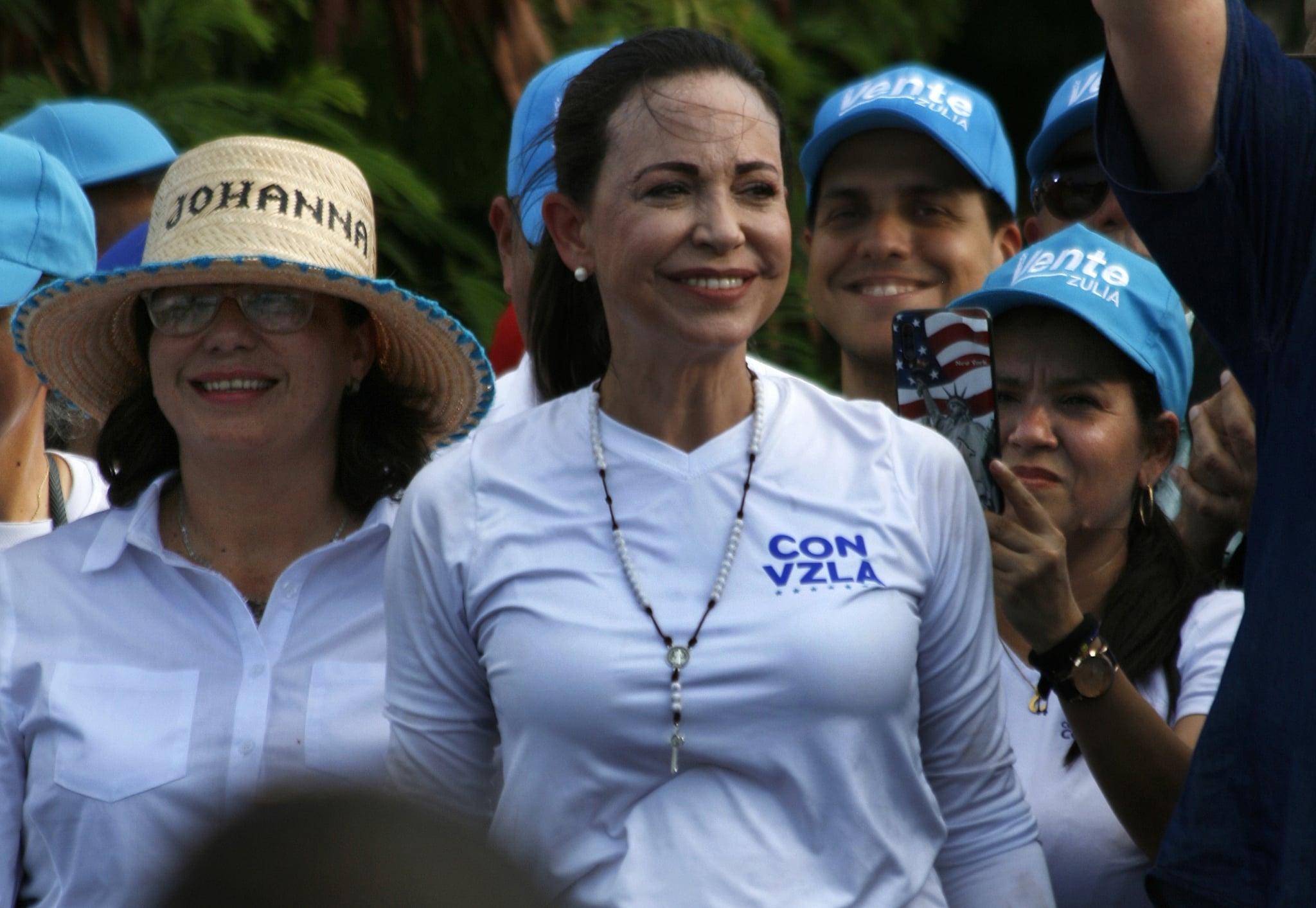 Đây là lần xuất hiện trước công chúng đầu tiên của bà Machado kể từ tháng Giêng năm nay, sau khi bà phải lẩn trốn trong nước suốt một năm để tránh bị chính quyền Maduro bắt giữ.
