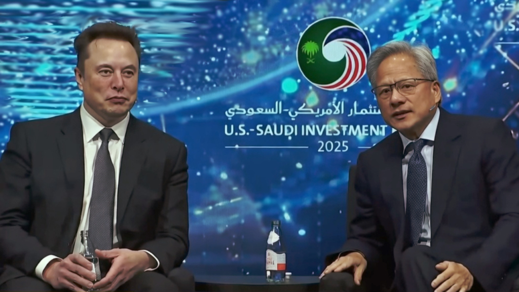 Hai nhà đổi mới Elon Musk và Jensen Huang thảo luận về tương lai của công nghệ, trí tuệ nhân tạo và không gian tại diễn đàn Mỹ-Ả Rập Xê Út. (Ảnh chụp màn hình video)