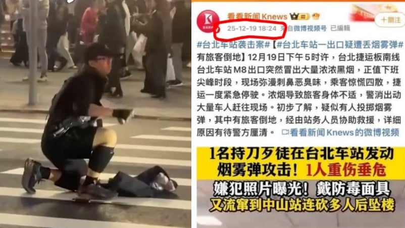 Ngày 19/12, Đài Bắc xảy ra vụ chém người; truyền thông Đại Lục đưa tin sớm về việc hung phạm rơi lầu, gây nghi vấn. (Ảnh chụp màn hình video)
