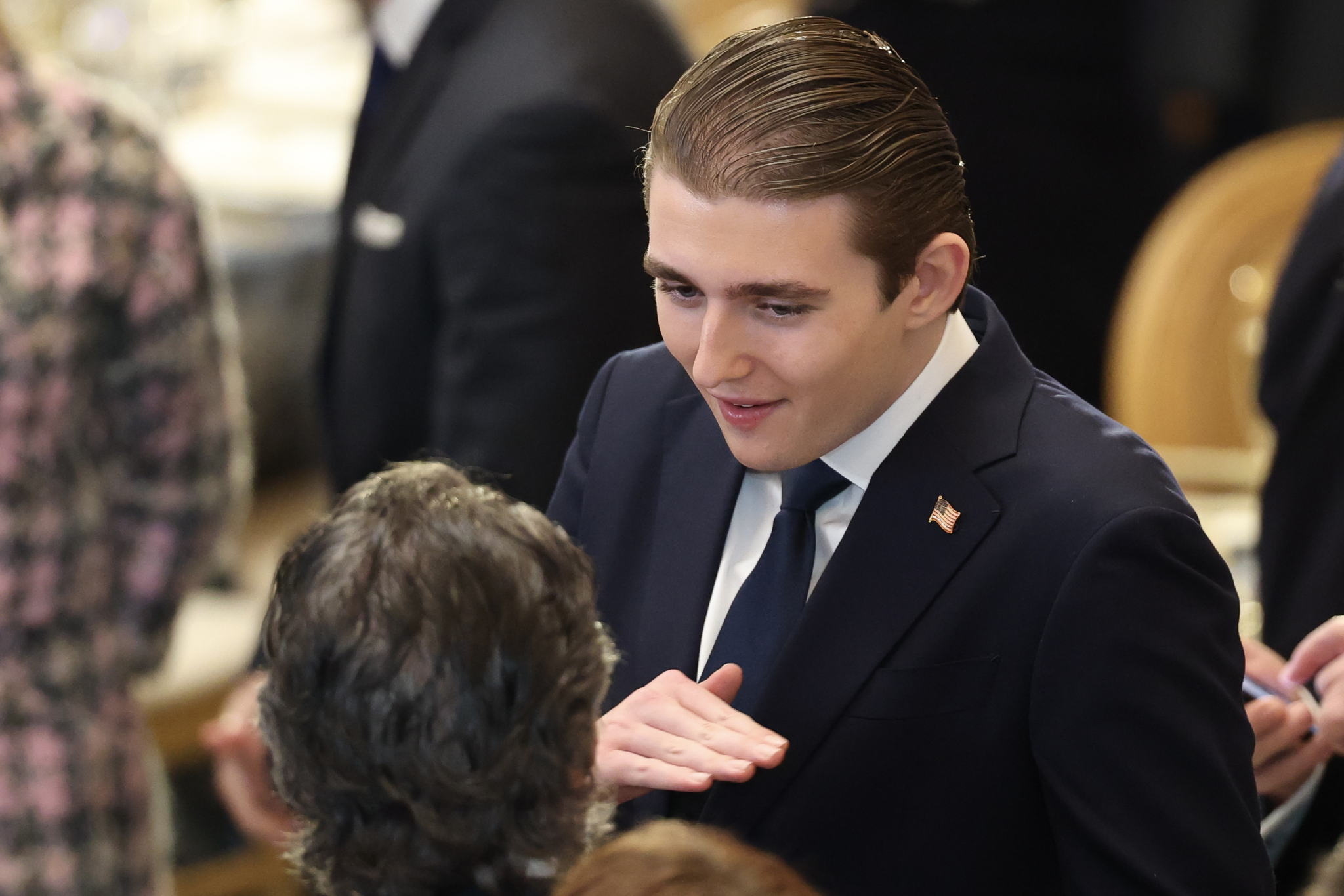 Barron Trump trò chuyện với một vị khách trước tiệc trưa nhậm chức tại Điện Capitol Hoa Kỳ vào ngày 20 tháng 1 năm 2025 tại Washington, DC. Donald Trump nhậm chức nhiệm kỳ thứ hai với tư cách là tổng thống thứ 47 của Hoa Kỳ. (Ảnh: Kevin Dietsch/Getty Images)