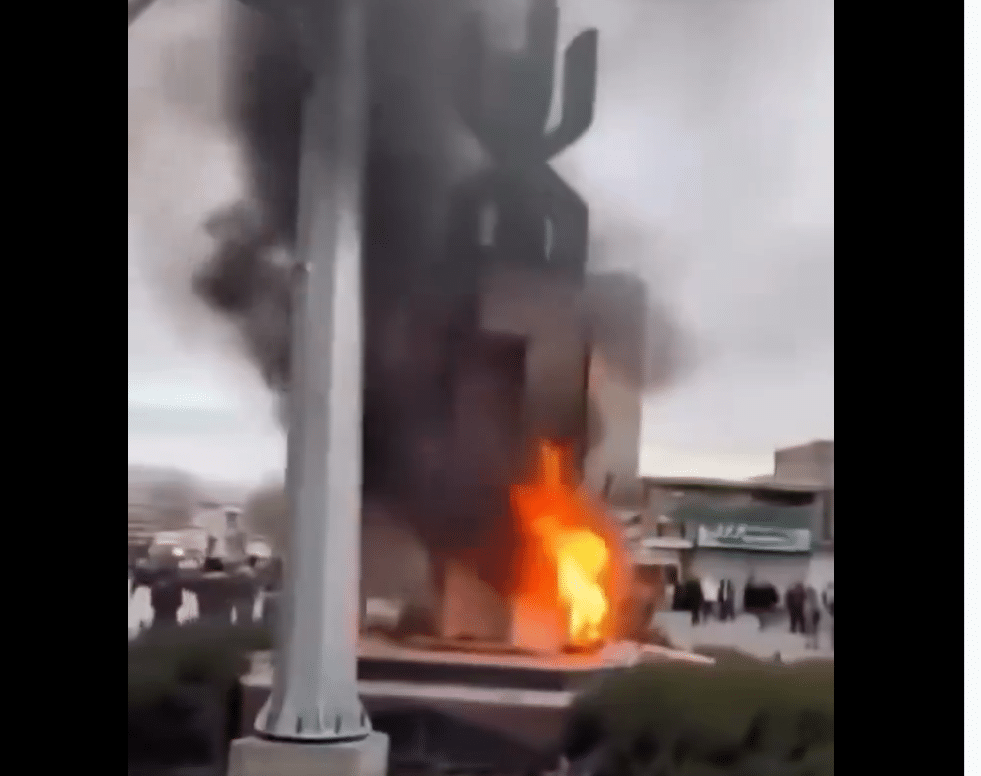 Biểu tình ở Iran, người dân xuống đường đốt cháy các bức tượng của chế độ Hồi giáo. (Ảnh chụp màn hình X)