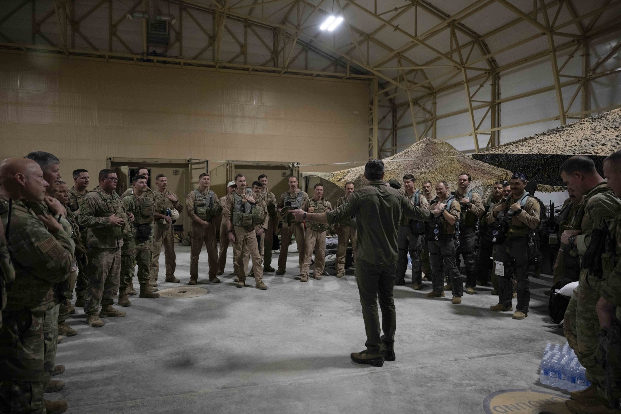 Người đứng đầu Lầu Năm Góc cho biết, trong thời gian ông thăm, hai quả tên lửa đang bay tới đã bị quân đội Mỹ bắn hạ thành công. Ông cũng nói thêm rằng ông đã trò chuyện với các binh sĩ thuộc Không quân và Hải quân Mỹ, trong đó có một số người “vừa mới trở về từ không phận Iran”.