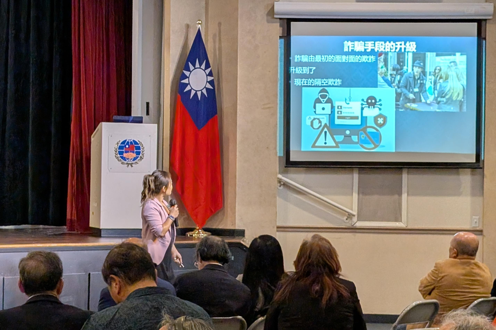 Nhằm giúp cộng đồng nâng cao sự cảnh giác, Thanh tra Aily Baldwin thuộc Đơn vị Điều tra Lừa đảo và Tội phạm mạng, Sở Cảnh sát Quận Los Angeles, đã có buổi diễn thuyết tại Trung tâm giao lưu người Hoa tại Los Angeles vào ngày 4/10 (thứ Bảy), chia sẻ các cách phòng tránh hiệu quả các thủ đoạn lừa đảo đang hoành hành, nhất là kiểu lừa đảo đầu tư và lừa đảo công nghệ AI nhắm vào nhóm người cao tuổi.