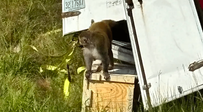 Sau vụ lật, một số con khỉ đã thoát khỏi xe vận chuyển, và có video ghi nhận khỉ bò trong vùng cỏ gần đường.