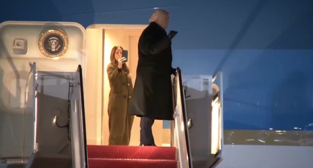 Theo các phóng viên tháp tùng, Tổng thống Trump đã lên chiếc máy bay mới.
