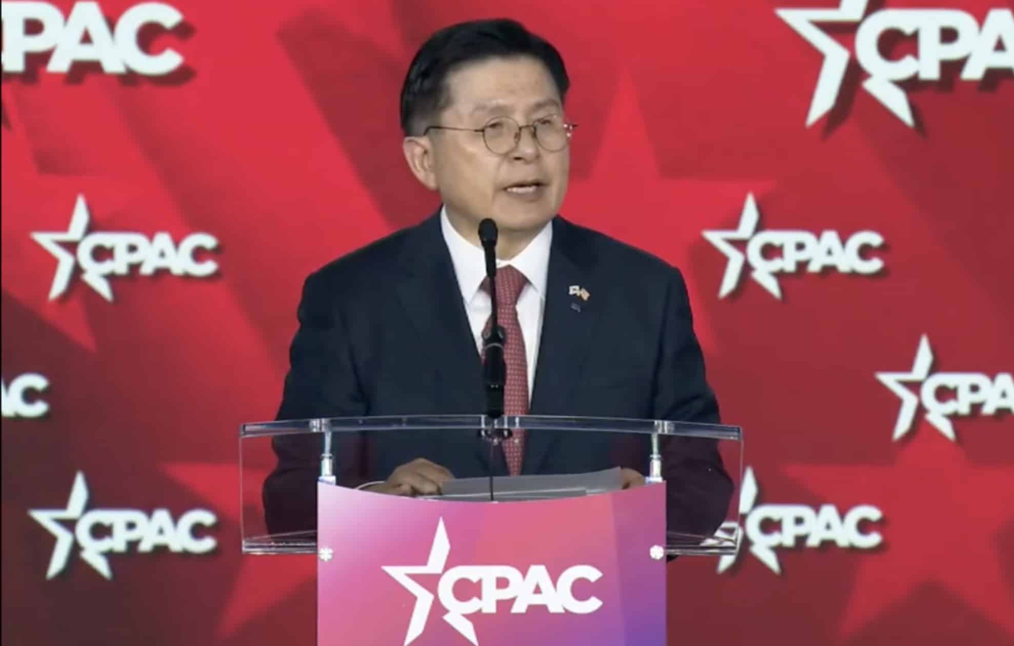 Trong bài phát biểu tại CPAC, ông Hwang nhấn mạnh rằng ở Hàn Quốc, tự do của rất nhiều công dân đang bị chèn ép, còn quốc hội thì đã bị các thế lực thân Bắc Kinh chi phối.