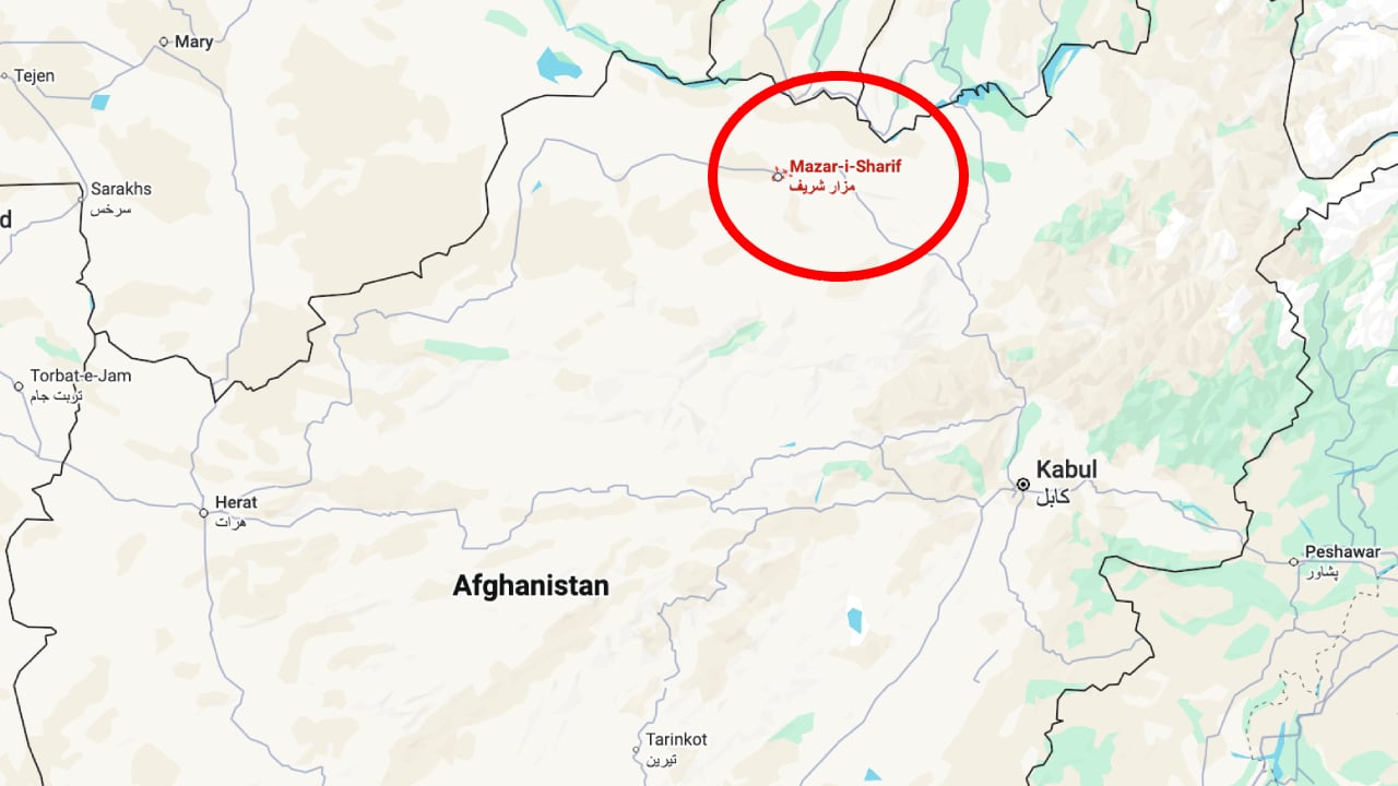 Các báo cáo sơ bộ cho biết trận động đất xảy ra ở độ sâu 28 km, gần thành phố Mazar-i-Sharif và thị trấn Khulm, Afghanistan vào rạng sáng thứ Hai (3/11/2025). (Ảnh Google Map)