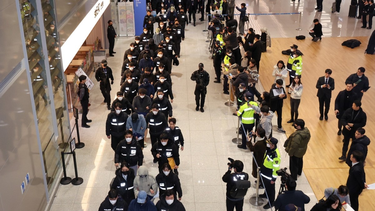Lực lượng đặc nhiệm chống tội phạm xuyên quốc gia (TF) Hàn Quốc đã dẫn độ 73 nghi phạm (65 nam và 8 nữ) bị cáo buộc lừa đảo khoảng 48,6 tỷ won Hàn Quốc (tương đương khoảng 30,2 triệu USD) từ 869 công dân Hàn Quốc. Chuyến bay mang số hiệu KE9690 của hãng Korean Air chở các nghi phạm khởi hành từ Phnom Penh, Campuchia, và hạ cánh xuống Nhà ga số 2 sân bay quốc tế Incheon vào khoảng 9:41 sáng cùng ngày. Đây là lần thứ tư các tội phạm Hàn Quốc được dẫn độ tập thể bằng chuyến bay thuê bao từ nước ngoài.