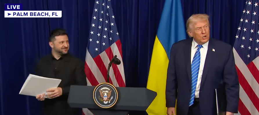 Tổng thống Hoa Kỳ Donald Trump và Tổng thống Ukraine Volodymyr Zelenskyy đã gặp mặt nhau tại Mar-a-Lago, tiểu bang Florida để thảo luận về một thỏa thuận hòa bình chấm dứt chiến tranh Nga–Ukraine. Họ mô tả tiến trình là “gần hoàn tất” và “tiến bộ nhiều”, với một khung hòa bình khoảng 20 điểm với phần lớn đã được đồng thuận.