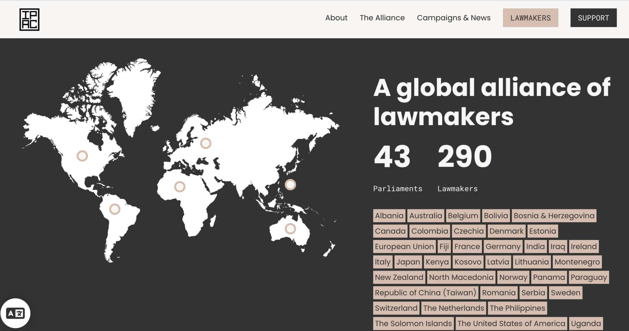 IPAC là tổ chức quốc tế bao gồm nghị viện của 43 quốc gia và Liên minh châu Âu (EU), với hơn 290 nghị sĩ đa đảng tham gia.