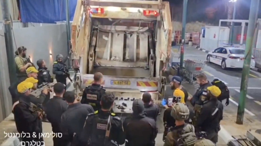 Ngày 13/4, cảnh sát và lực lượng an ninh Israel đã chặn một chiếc xe rác trong cuộc kiểm tra thường xuyên. Khi mở thùng xe, họ phát hiện bên trong chứa 68 người Palestine nhập cư trái phép chen chúc trong khoang nén rác. Những hình ảnh từ hiện trường thực sự gây sốc.