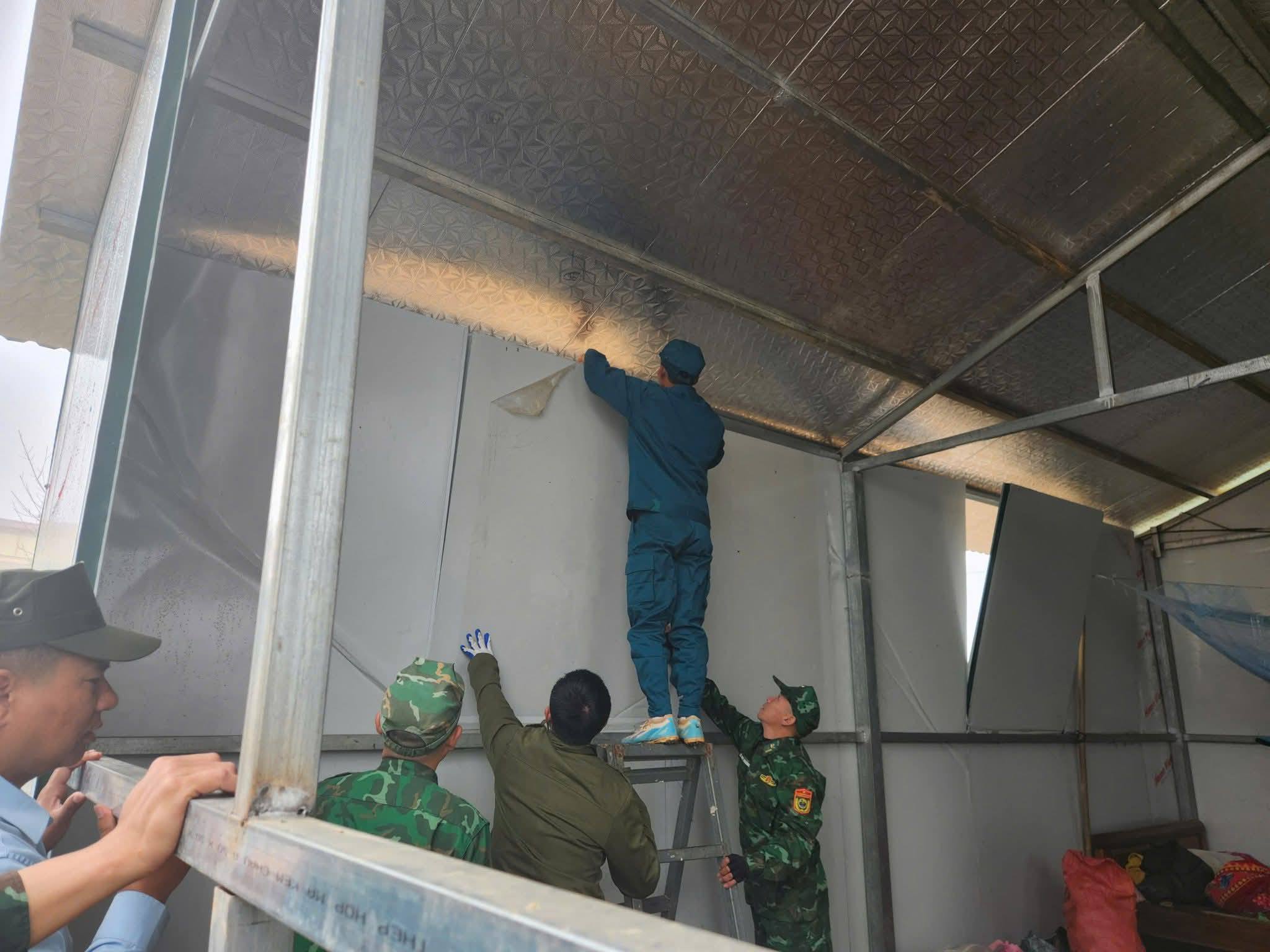 Bộ đội Đồn Biên phòng Pa Ủ cùng dân quân tự vệ xã và công an xã giúp người dân sửa nhà. (Ảnh: LLVT tỉnh Lai Châu/Facebook)
