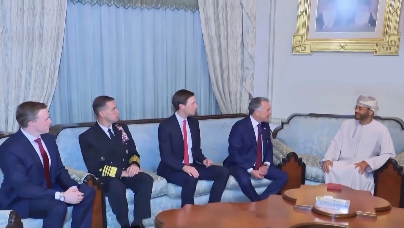Đặc phái viên Trung Đông, Steve Wittkoff, cùng con rể của Tổng thống Trump, Jared Kushner, gặp Ngoại trưởng Oman Badr al-Busaidi. (Ảnh chụp màn hình video)