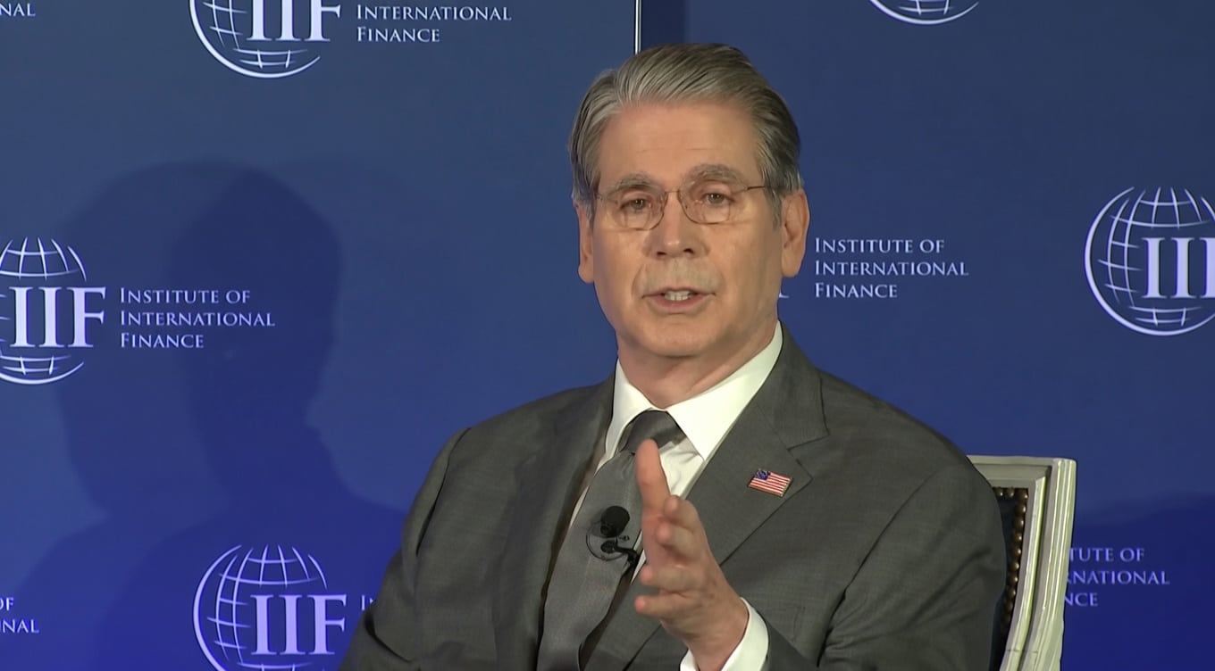 Bộ trưởng Tài chính Hoa Kỳ Scott Bessent thảo luận về tài chính toàn cầu tại một sự kiện do Viện Tài chính Quốc tế tổ chức ở Washington D.C. (Ảnh chụp màn hình video)