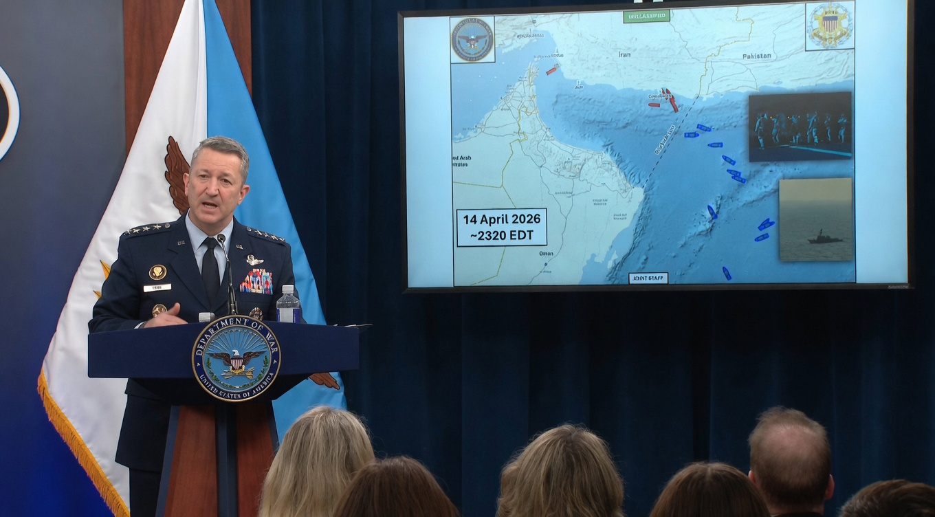 Chủ tịch Hội đồng Tham mưu trưởng Liên quân Mỹ, Tướng Dan Caine, tại cuộc họp báo ngày thứ Năm (16/4) ở Lầu Năm Góc nhấn mạnh Mỹ “sẽ tích cực truy vết mọi tàu treo cờ Iran, hoặc bất kỳ tàu nào tìm cách cung cấp hỗ trợ vật chất cho Iran, bao gồm cả ‘hạm đội bóng tối’ vận chuyển dầu của Iran”.