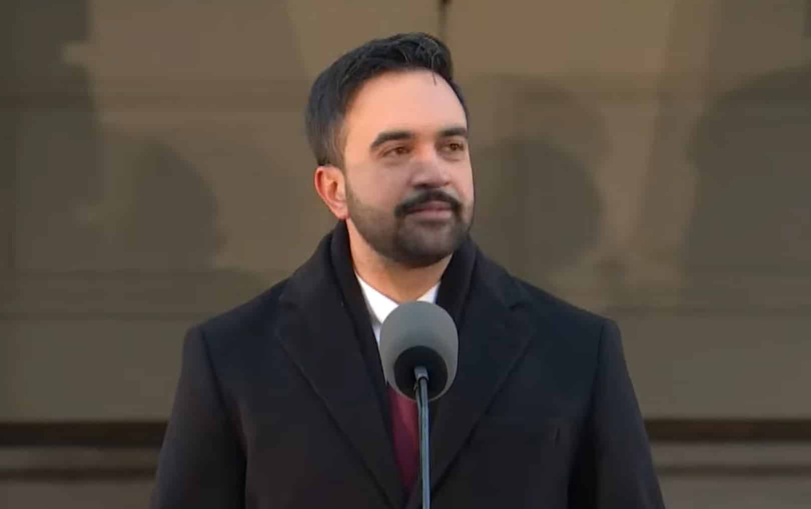 Ông Zohran Mamdani trong buổi tuyên thệ nhậm chức tại Tòa thị chính vào buổi chiều ngày 1/1/2026. (Ảnh chụp màn hình YouTube)