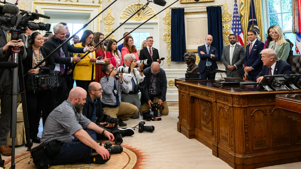 Tổng thống Donald Trump phát biểu với các thành viên của giới truyền thông hôm 15/9/2025 tại Phòng Bầu dục. (Ảnh: Molly Riley/ Nhà Trắng)