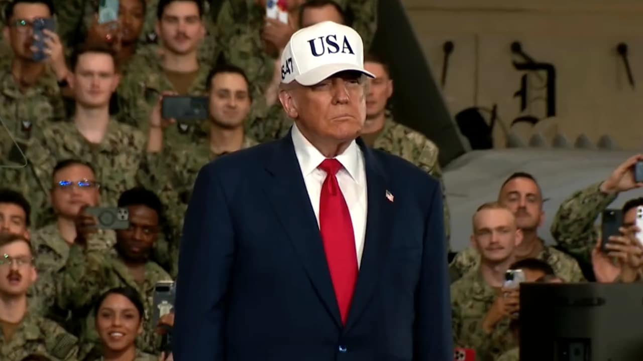 Tổng thống Trump phát biểu trước các quân nhân Hoa Kỳ trên tàu sân bay USS George Washington. (Ảnh: Chụp màn hình video Nhà Trắng)