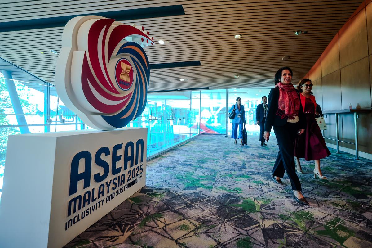 Kuala Lumpur - Malaysia. Ngày 4/8/2025, các đại biểu đi ngang qua biểu tượng ASEAN Malaysia 2025 với thông điệp “Thúc đẩy tính toàn diện và phát triển bền vững” tại địa điểm tổ chức hội nghị thượng đỉnh. (Nguồn: Zulfadhli Bin Zulkifli / Shutterstock)