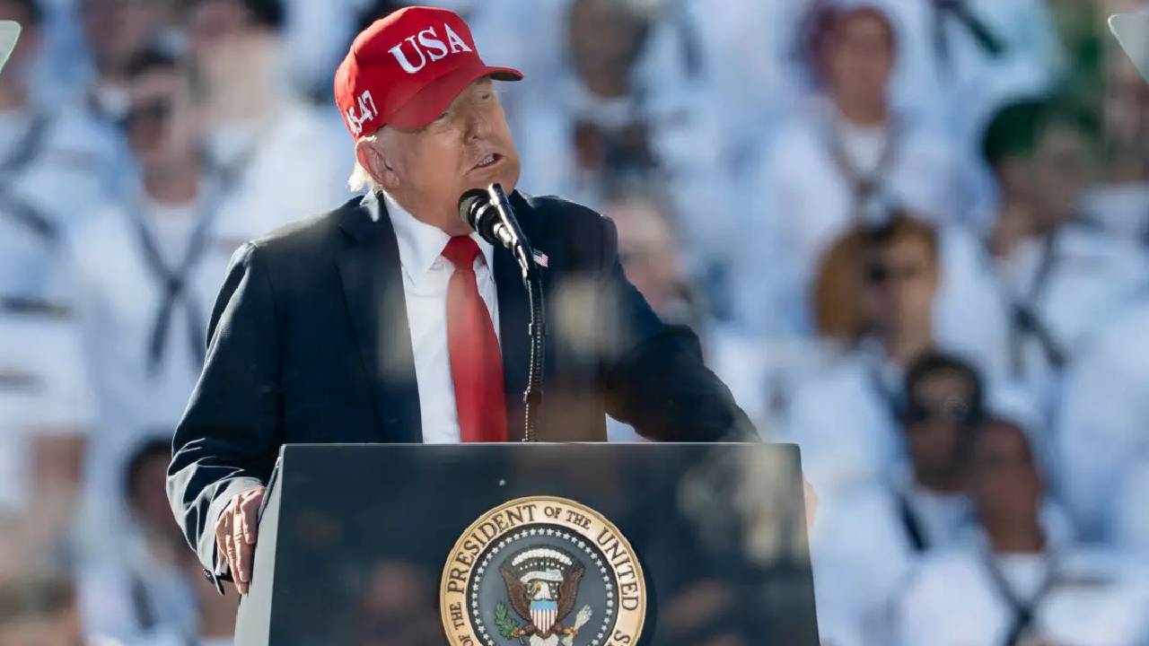 Tổng thống Donald Trump phát biểu tại sự kiện "250 Hải quân Hoa Kỳ ở Norfolk, Virginia, vào ngày 5/10/2025. Madalina Kilroy/The Epoch Times
